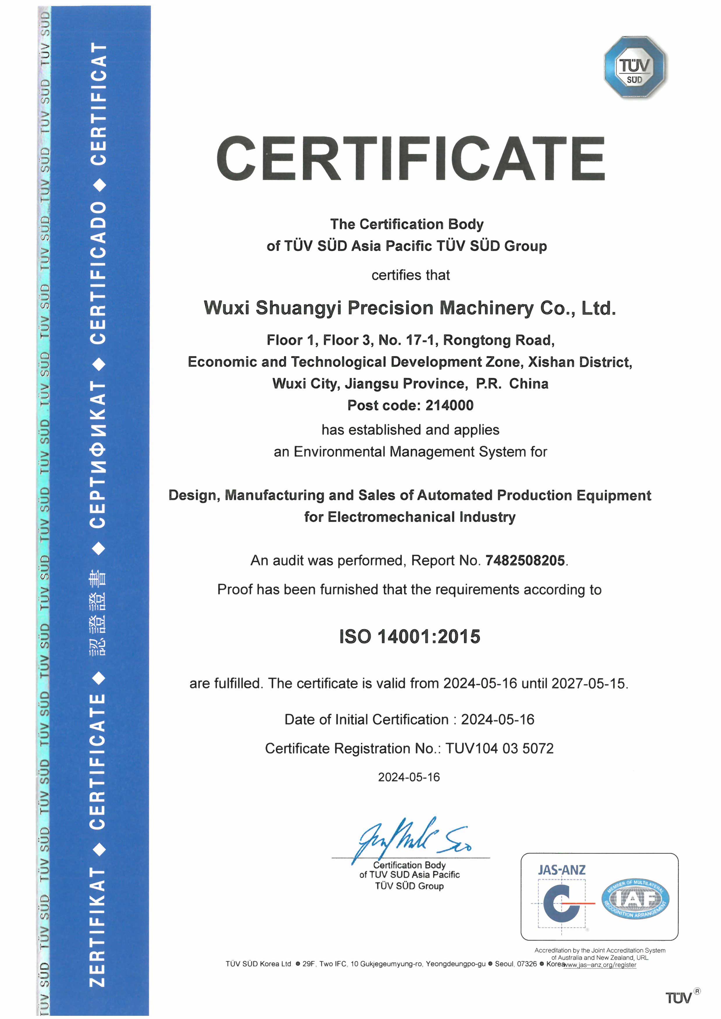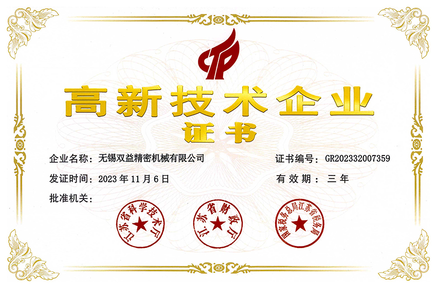 雙益精機(jī)高度重視品質(zhì)管理,已通過 S G S公司的質(zhì)量體系認(rèn)證 ISO9001:2015、TUV公司的環(huán)境體系ISO14001:2015,職業(yè)健康安全 管理體系ISO14001:2015,能源管理體系IS050001:2018,以及知識(shí)產(chǎn) 權(quán)管理體系,為客戶提供安全、優(yōu)質(zhì)的產(chǎn)品。同時(shí),公司多次被評(píng)選為 江蘇省民營(yíng)科技企業(yè),并獲得江蘇省人民政府授予的《高新技術(shù)企業(yè)》 稱號(hào)。此外,雙益精機(jī)兩次榮獲浙江省科學(xué)技術(shù)進(jìn)步二等獎(jiǎng),獲得江蘇 省專精特新企業(yè)稱號(hào),同時(shí)被認(rèn)定為市級(jí)企業(yè)技術(shù)中心和市級(jí)工程技 術(shù)研究中心,并被認(rèn)定為市級(jí)保密試點(diǎn)單位。